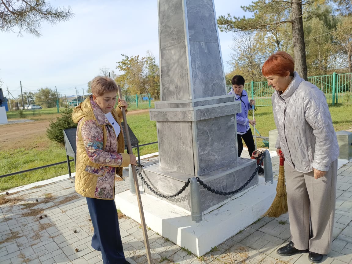 В рамках акции был проведён субботник у памятника жителям с.Чернышевка, погибшим в годы ВОВ