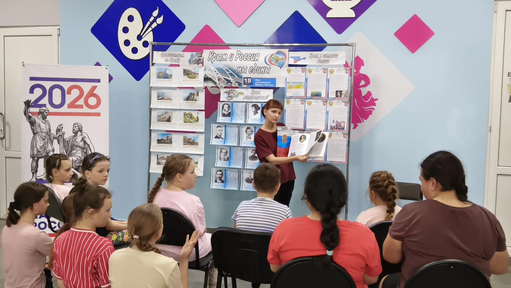 Ребята узнали, что Крым в 2014 году присоединился к России, и теперь Республика Крым и город Севастополь являются частью Российской Федерации. Поговорили о дружбе народов, о том, что жители Крыма вместе с Россией строят общее будущее.